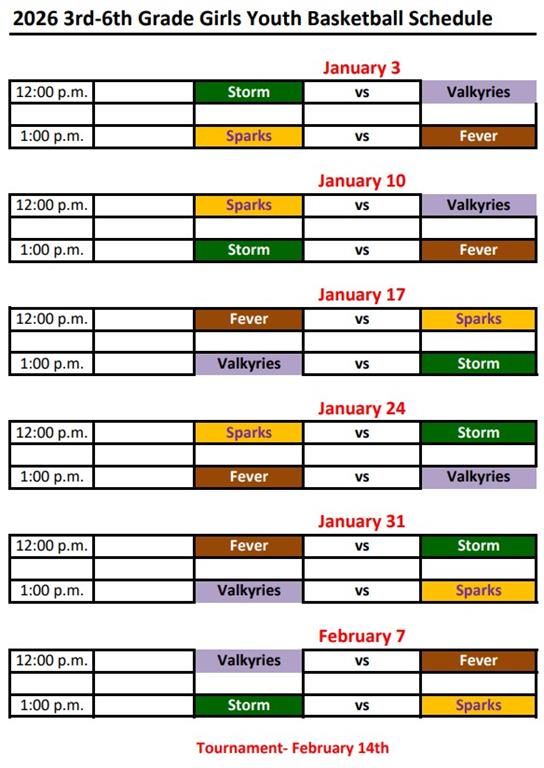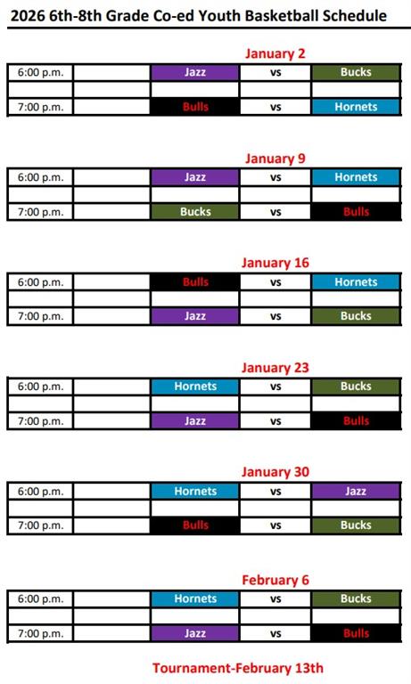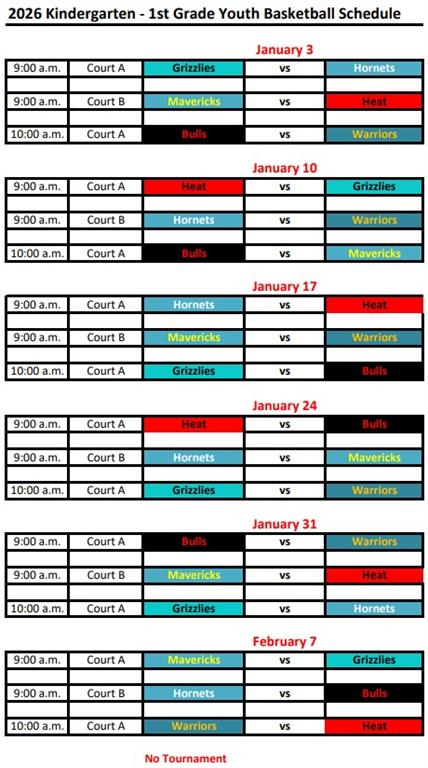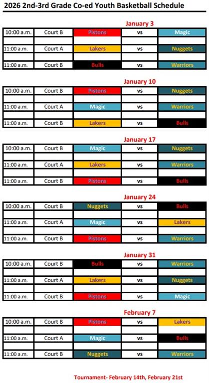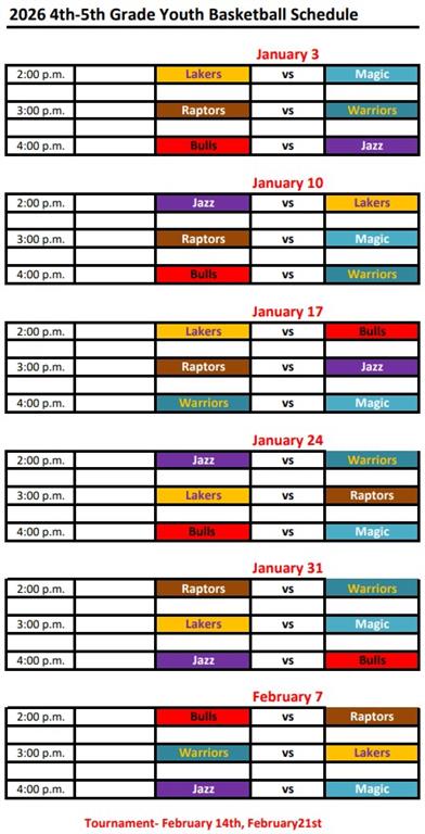Youth Basketball Regular Season Schedule 2026 - Thursday, December 4, 2025